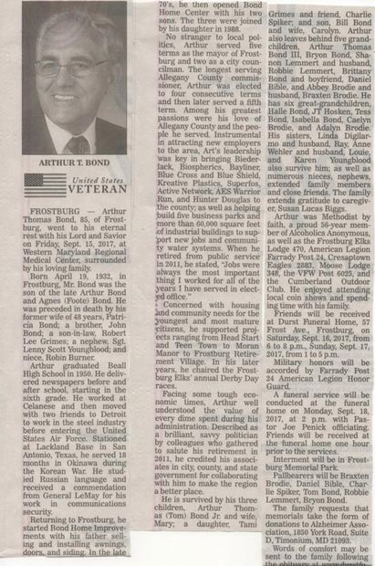A graduate of Fort Hill High School, class of 1942, William was a United States Army veteran during World War II and retired from Pittsburgh Plate Glass Company. He was a former member of the Cumberland Elks and the Fort Cumberland Post 13 American Legion Ladies Auxiliary. William was an avid coin collector and baseball card collector. He was a hard worker and loved being outdoors.