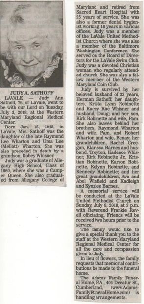 Friends will be received at the Adams Family Funeral Home, P.A., 404 Decatur Street, Cumberland, (www.AdamsFamilyFuneralHome.com) on Saturday, July 30, 2016, from 11:00 A.M. to 1:00 P.M.